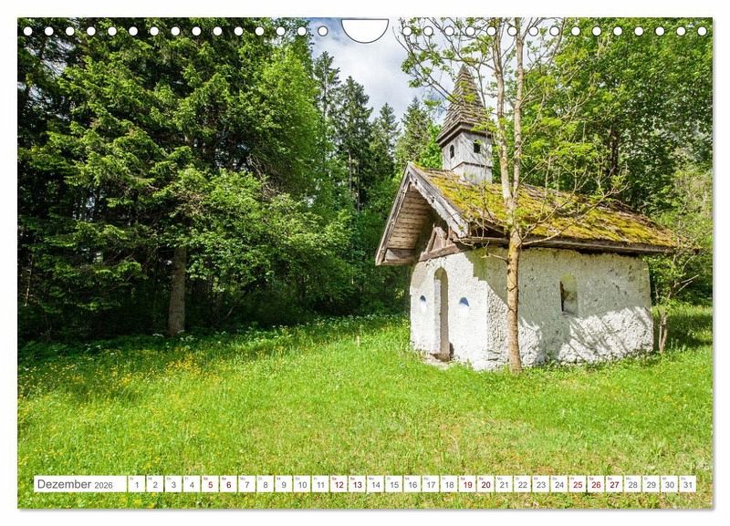 Juni: Die Kapelle und ein Bauernhof prägen das Landschaftsbild.