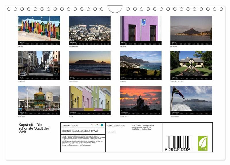 Kapstadt, Metropole in Südafrika. Die Stadt fasziniert mit Ihrer Vielfältigkeit, Berge, Meer, Weinanbau, endlose Strände, eine multikulturelle Stadt die einfach begeistert. Erleben Sie Impressionen aus Kapstadt und Umgebung in diesem hochwertigen Kalender und lassen Sie sich inspirieren, vielleicht für Ihre erste eigene Reise in diese wundervolle Stadt oder schwelgen Sie in Erinnerungen an Ihren letzten Besuch am Kap der Guten Hoffnung.