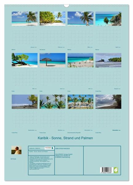 QUALITÄT - Hochwertiger Fotokalender mit 12 wunderschönen Motiven auf lichtbeständigem Bilderdruckpapier, robuste Spiralbindung mit Aufhängebügel.NACHHALTIG - deutliche Abfallreduzierung durch bedarfsgerechte Einzelstückfertigung, umweltfreundliches FSC-zertifiziertes Papier, Produktion in Deutschland, klimabewusste Logistik.PERFEKTES GESCHENK - Kalender für Freunde und Familie, für Kinder und Erwachsene, jung und alt, zu Weihnachten, Geburtstag oder zwischendurch.VIELFALT - Bildkalender in verschiedenen Formaten, z.B. DIN A5, DIN A4, DIN A3 sowie DIN A2. Ob Naturmotiv, Gemälde oder Fotos, ideal für ein persönliches Wohlfühlambiente.Die schönsten Strände der Karibik machen Lust auf Meer! von Autor(in): Miroslaw Polok