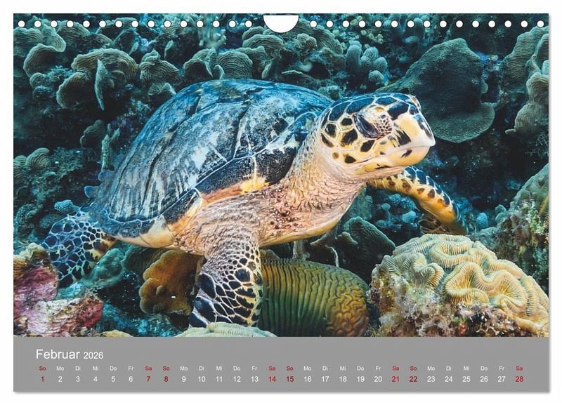 Februar: Echte Karettschildkröte im Riff - Karibik / Curaçao