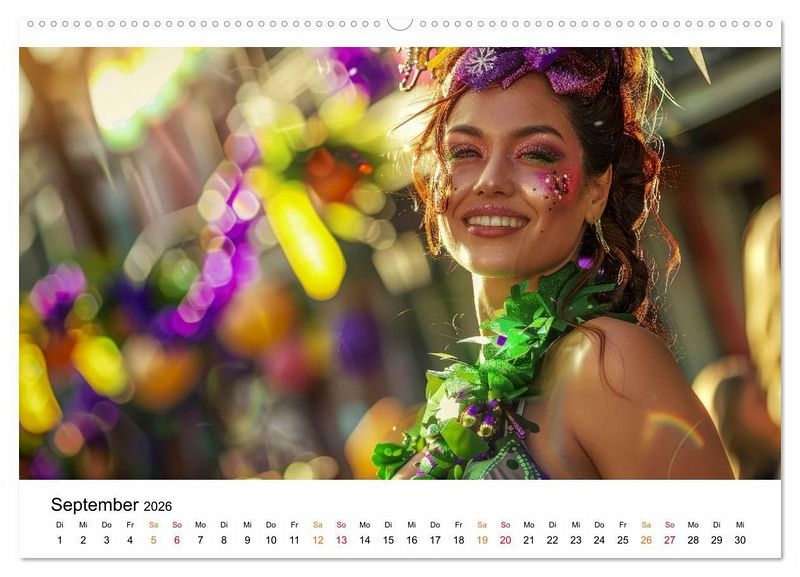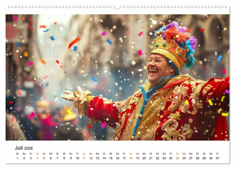 Begeben Sie sich auf eine Reise des Karneval-Feierns. Erleben Sie das ausgelassene Treiben des Mardi Gras in New Orleans, wo farbenfrohe Paraden und lebhafte Straßenfeste die Oberhand gewinnen. Spüren Sie die pulsierende Energie der mit Samba gefüllten Straßen von Rio de Janeiro. Betrachten Sie die traditionellen deutschen Festivitäten mit ausgelassenen Umzügen. Tauchen Sie ein in den venezianischen Karneval, in der kunstvolle Masken und prächtige Bälle Sie in Staunen versetzen. Der Fotokünstler Peter Roder hat beeindruckende KI-Bilder gestaltet. Ein außergewöhnlicher Kalender, der die Vielfalt des Karnevals präsentiert.