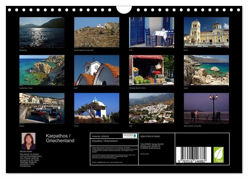 Sie träumen von einem Urlaub in Griechenland - aber abseits des großen Touristenrummels? Die 13 Aufnahmen des Foto-Kalenders "Karpathos" wecken die Vorfreude auf den nächsten Sommerurlaub unter der Sonne Griechenlands. Typisch griechisch, aber weniger touristisch vermarktet bietet die nach Rhodos zweitgrößte Dodekanes-Insel in der südlichen Ägäis Erholung pur, ohne auf Ausflüge und Sightseeing ganz verzichten zu müssen.