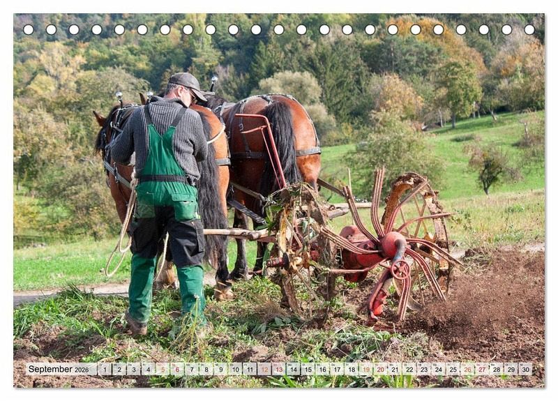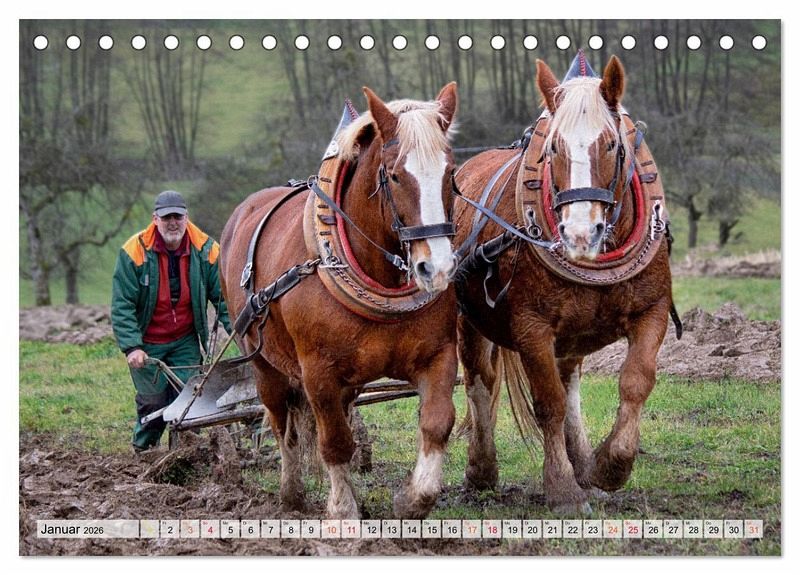 Januar: Im Winter das Pflügen der Felder mit einem Wendepflug.