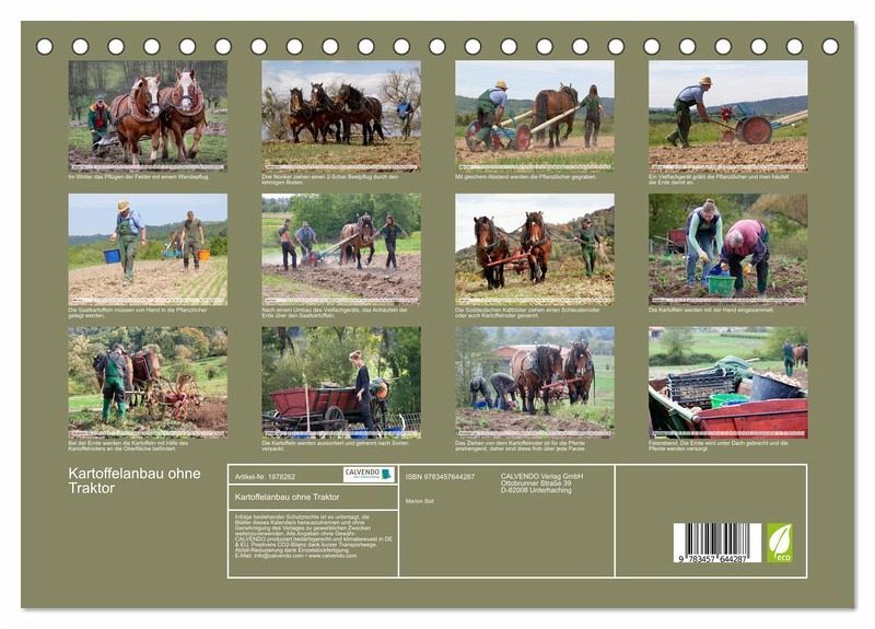 QUALITÄT - Hochwertiger Fotokalender mit 12 wunderschönen Motiven auf lichtbeständigem Bilderdruckpapier, robuste Spiralbindung.NACHHALTIG - deutliche Abfallreduzierung durch bedarfsgerechte Einzelstückfertigung, umweltfreundliches FSC-zertifiziertes Papier, Produktion in Deutschland, klimabewusste Logistik.PERFEKTES GESCHENK - Kalender für Freunde und Familie, für Kinder und Erwachsene, jung und alt, zu Weihnachten, Geburtstag oder zwischendurch.VIELFALT - Bildkalender in verschiedenen Formaten, z.B. DIN A5, DIN A4, DIN A3 sowie DIN A2. Ob Naturmotiv, Gemälde oder Fotos, ideal für ein persönliches Wohlfühlambiente.Der Anbau von Kartoffeln mit unseren Pferden und Körpereinsatz. von Autor(in): Marion Sixt