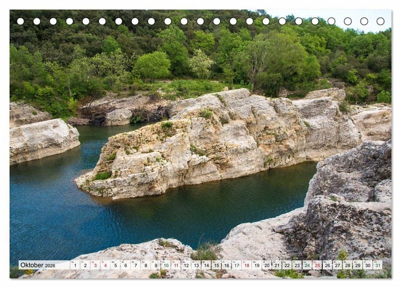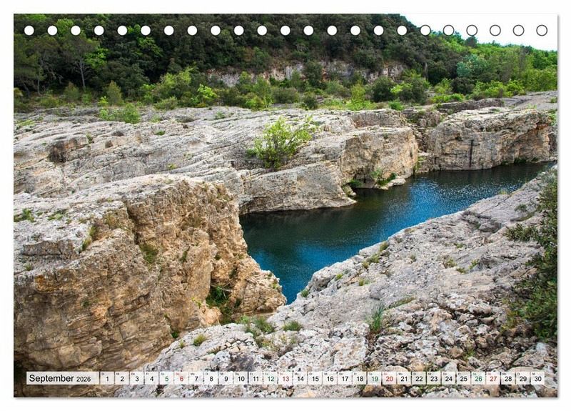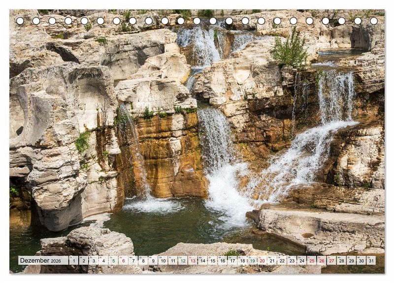 Dieser Kalender entführt jeden Betrachter in die faszinierende Naturwelt der Kaskaden von Sautadet in der Nähe des malerischen Dorfes La Roque-sur-Cèze. Natürliche Wasserfälle gruben sich über Jahrmillionen in den weißen Kalkstein und kreierten eine atemberaubende Landschaft. Naturschauspiel im Flusslauf der Cèze in Südfrankreich ist ein Geheimtipp für Naturliebhaber. Ein eindrucksvolles und lautes Spektakel aus Felsen, Strudeln, Rinnen und Hohlräumen erwartet den Besucher. Das Wasser ist glasklar und am Ende der 500m breiten Kaskaden liegt ein schöner weißer Sandstrand, der zum Baden einlädt.