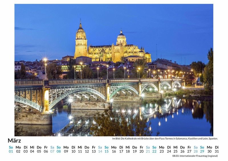 Entdecken Sie die atemberaubende Schönheit Kastiliens und Leons mit unserem exklusiven Wandkalender! Lassen Sie sich Monat für Monat von 12 sorgfältig ausgewählten Motiven dieser faszinierenden Region Spaniens verzaubern - von majestätischen Burgen bis hin zu malerischen Landschaften. Gedruckt auf hochwertigem, lichtbeständigem Bilderdruckpapier, bringt dieser Kalender die Farbenpracht Kastiliens und Leons direkt in Ihr Zuhause. Nachhaltigkeit liegt uns am Herzen: Unsere Kalender werden in Deutschland auf FSC-zertifiziertem Papier produziert. Perfekt als Geschenk oder für die eigene Wand - holen Sie sich ein Stück spanische Kultur in Ihr Leben! Hochwertig Erleben Sie ein Jahr voller Eleganz mit unserem Premium-Fotokalender. Jedes der 12 Motive ist auf hochwertigem, lichtbeständigem Bilderdruckpapier gedruckt, um die Lebendigkeit jedes Bildes zu bewahren. Die robuste Spiralbindung gewährleistet Langlebigkeit und einfache Handhabung. Nachhaltig Unser Engagement für die Umwelt spiegelt sich in jedem Exemplar wider. Durch die Produktion auf Abruf reduzieren wir signifikant unseren Abfall. Wir verwenden ausschließlich umweltfreundliches, FSC-zertifiziertes Papier. Stolz gefertigt in Deutschland, achten wir bei unserer Logistik auf Klimaschutz, um unseren ökologischen Fußabdruck zu minimieren. Das ideale Geschenk Dieser Kalender ist das perfekte Präsent für jeden Anlass - ob Weihnachten, Geburtstage oder einfach als liebevolle Aufmerksamkeit zwischendurch. Geeignet für Freunde, Familie, Kinder und Erwachsene gleichermaßen, bereichert er jedes Zuhause mit seiner Vielfalt und Schönheit, unabhängig vom Alter der Beschenkten.