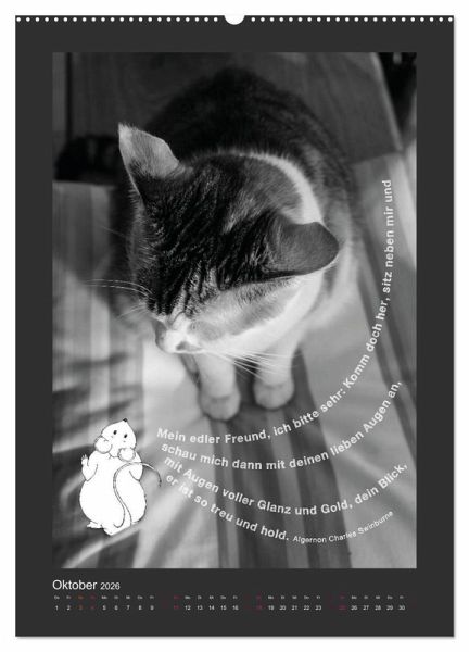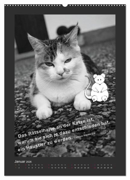 "Katz & Maus" ist ein einzigartiger Kalender, der Schwarz-Weiß-Fotografie mit verspielter Illustration verbindet. Zwei charmante Katzen - Mutter und Tochter - treffen auf eine kugelrunde, freche Maus und sorgen für humorvolle Kontraste. Ergänzt wird das Ganze durch schwungvolle Typografie mit Sprüchen, Reimen und Zitaten rund um die Welt der Katzen. Ein kreativer Begleiter für das ganze Jahr, perfekt für Katzenfreunde, Typografie-Liebhaber und alle, die das Besondere lieben.