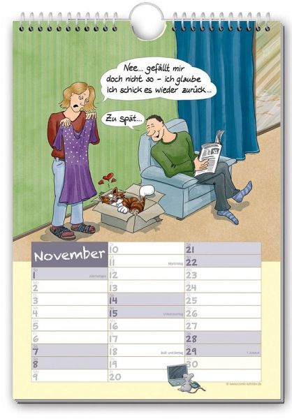 Wandkalender, 210 x 297 mm, Wire-O-Bindung mit Aufhänger, 14 Seiten