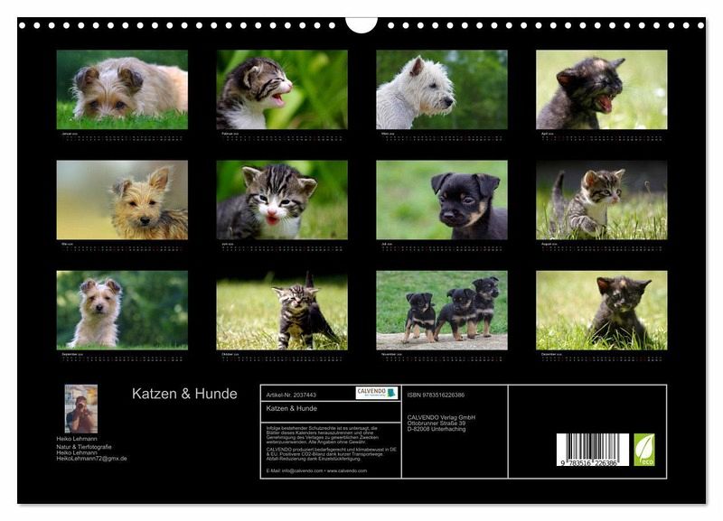 QUALITÄT - Hochwertiger Fotokalender mit 12 wunderschönen Motiven auf lichtbeständigem Bilderdruckpapier, robuste Spiralbindung mit Aufhängebügel.NACHHALTIG - deutliche Abfallreduzierung durch bedarfsgerechte Einzelstückfertigung, umweltfreundliches FSC-zertifiziertes Papier, Produktion in Deutschland, klimabewusste Logistik.PERFEKTES GESCHENK - Kalender für Freunde und Familie, für Kinder und Erwachsene, jung und alt, zu Weihnachten, Geburtstag oder zwischendurch.VIELFALT - Bildkalender in verschiedenen Formaten, z.B. DIN A5, DIN A4, DIN A3 sowie DIN A2. Ob Naturmotiv, Gemälde oder Fotos, ideal für ein persönliches Wohlfühlambiente.Katzen & Hunde in natürlichen Umfeld von Autor(in): Heiko Lehmann