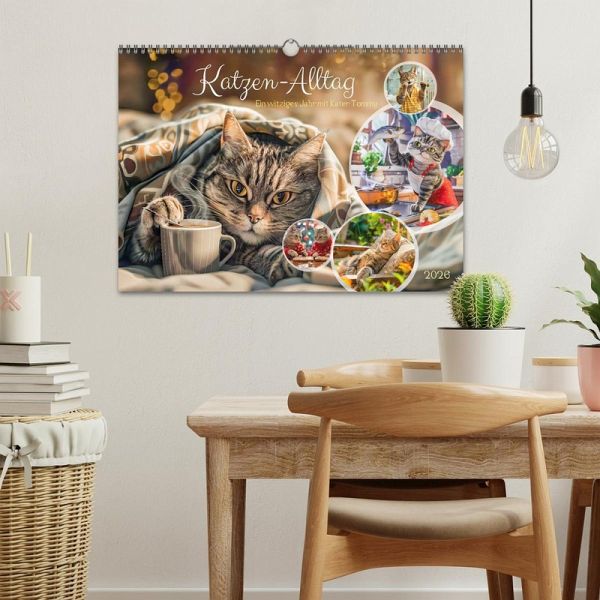 Tauchen Sie ein in den Alltag von Tommy, dem grau getigerten Kater, mit unserem einzigartigen Kalender "Katzen-Alltag". Begleiten Sie Tommy durch ein Jahr voller humorvoller KI-generierte Momente, während er seinen Morgenkaffee genießt, durch die Natur joggt und radelt und seine Freunde zu einem üppigen Fischabendmahl einlädt. Jeder Monat präsentiert eine neue lustige Szene aus Tommys Leben, die Sie zum Schmunzeln bringt und für gute Laune sorgt. Ideal für Katzenliebhaber und alle, die gerne lachen