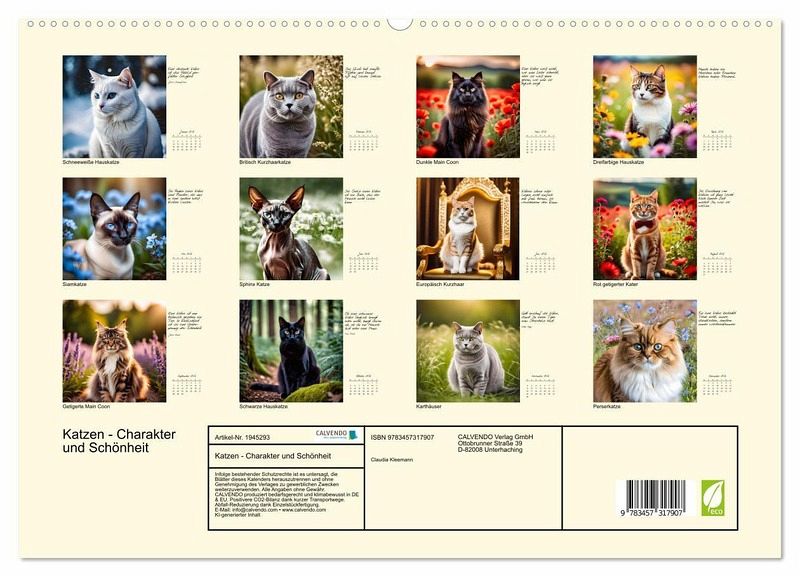 PREMIUM-LINIE - Brillanter Fotokalender mit 12 wunderschönen Motiven, Kunstdruck in Hochglanz in Museumsqualität.QUALITÄT - edle Materialien, stabile Rückwand mit 2 innovativen Einstecktaschen für eine optimale Präsentation an der Wand.NACHHALTIG - deutliche Abfallreduzierung durch bedarfsgerechte Einzelstückfertigung, umweltfreundliches FSC-zertifiziertes Papier, Produktion in Deutschland, klimabewusste Logistik.PERFEKTES GESCHENK -Kalender für Freunde und Familie, für Kinder und Erwachsene, jung und alt, zu Weihnachten, Geburtstag oder zwischendurch.Zauberhafte Portraits verschiedener Rassen mit weisen Sprüchen von Autor(in): Claudia Kleemann