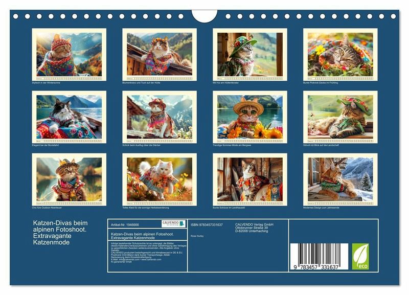 Begleiten Sie unsere glamourösen Katzenmodels auf eine Reise durch die Welt der Mode und des Spaßes! Mit Hilfe von KI entstand diese einzigartige Kollektion von Bildern, auf denen unsere pelzigen Freunde in den Bergen, auf grünen Wiesen und sogar am Wasser posieren - immer mit einem Hauch von Eleganz und einem Schuss Humor.