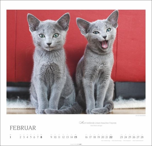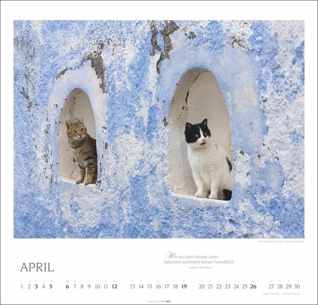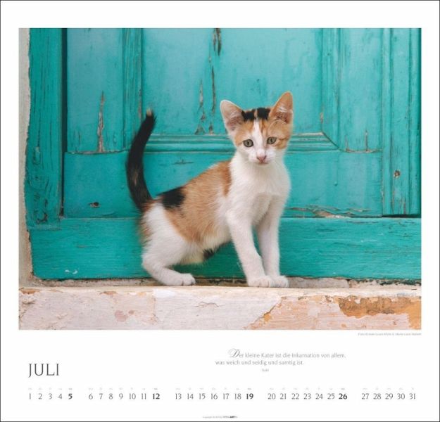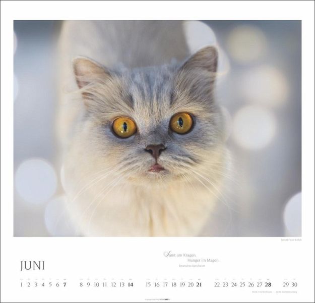 - Rund ums Jahr die passende Portion Katzenliebe: Monatskalender mit 12 tollen Porträts von den Diven unter den Haustieren- Monat für Monat mit Eleganz auf Samtpfoten: Katzen-Kalender mit anmutigen Fotografien und Zitaten berühmter Katzenfreund:innen- Dekorativer Blickfang für jede Wand: Kalender XL im Format 48 × 46 cm mit Monatskalendarium und Spiralbindung- Das ideale Geschenk für Katzenliebhaber:innen: Fotokalender mit eleganten und geheimnisvollen Aufnahmen der possierlichen Stubentiger- Natur in ihrer ganzen Vielfalt: die Tierkalender von Weingarten im Athesia KalenderverlagSprachen: Deutsch, Englisch