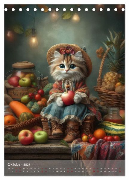 Oktober: Frisches Obst und Gemüse nach Landfrauenart bietet diese kleine Katze an
