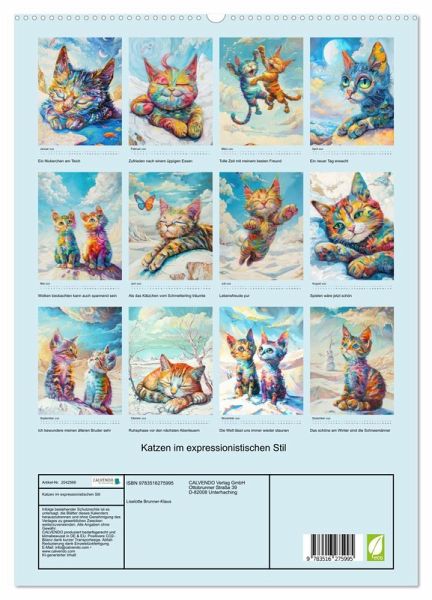 PREMIUM-LINIE - Brillanter Fotokalender mit 12 wunderschönen Motiven, Kunstdruck in Hochglanz in Museumsqualität.QUALITÄT - edle Materialien, stabile Rückwand mit 2 innovativen Einstecktaschen für eine optimale Präsentation an der Wand.NACHHALTIG - deutliche Abfallreduzierung durch bedarfsgerechte Einzelstückfertigung, umweltfreundliches FSC-zertifiziertes Papier, Produktion in Deutschland, klimabewusste Logistik.PERFEKTES GESCHENK - Kalender für Freunde und Familie, für Kinder und Erwachsene, jung und alt, zu Weihnachten, Geburtstag oder zwischendurch.Bunte Katzenwelt von Autor(in): Liselotte Brunner-Klaus