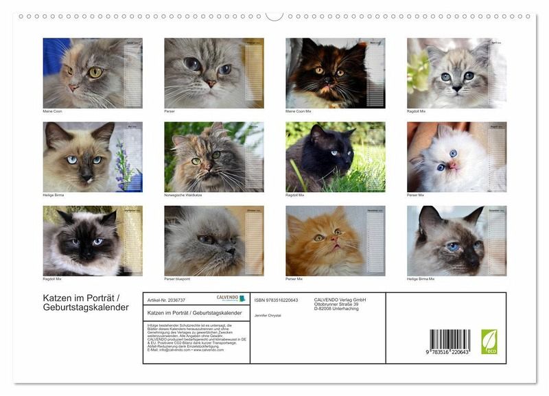 Dieser Kalender ist das ideale Geschenk für jeden Katzenfreund. Einzigartige Porträtaufnahmen