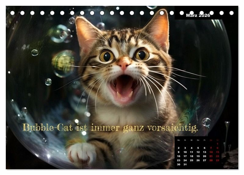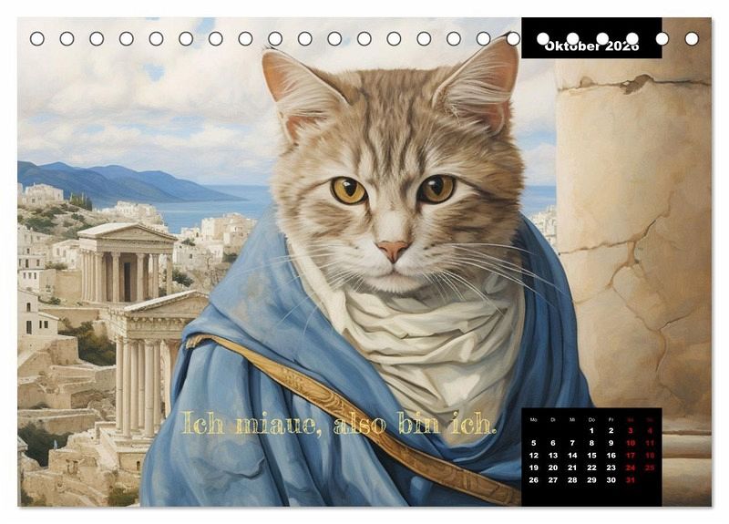 Katzen sind die beleibtesten Haustiere in Deutschland - vollkommen zu recht. Dieser Kalender wirkt einen etwas anderen, aber liebevollen Blick auf unsere pelzigen Freunde. Die mit KI erstellten Bilder zeigen viele bisher unbekannte Facetten - von der Samuraikatze, über die Weltraumkatze bis zum Weihnachtsbaumerklimmer. So haben sie Katzen noch nie gesehen. Drei Sachen haben ale Bilder gemeinsam: Katzen sind süß, überraschend und immer lustig. Der perfekte Kalender für alle Katzenfreunde, die auch Spaß verstehen.