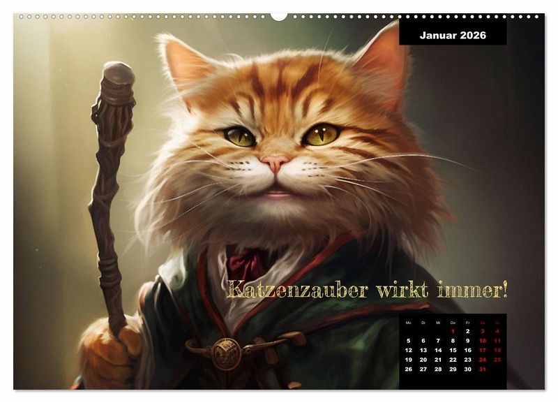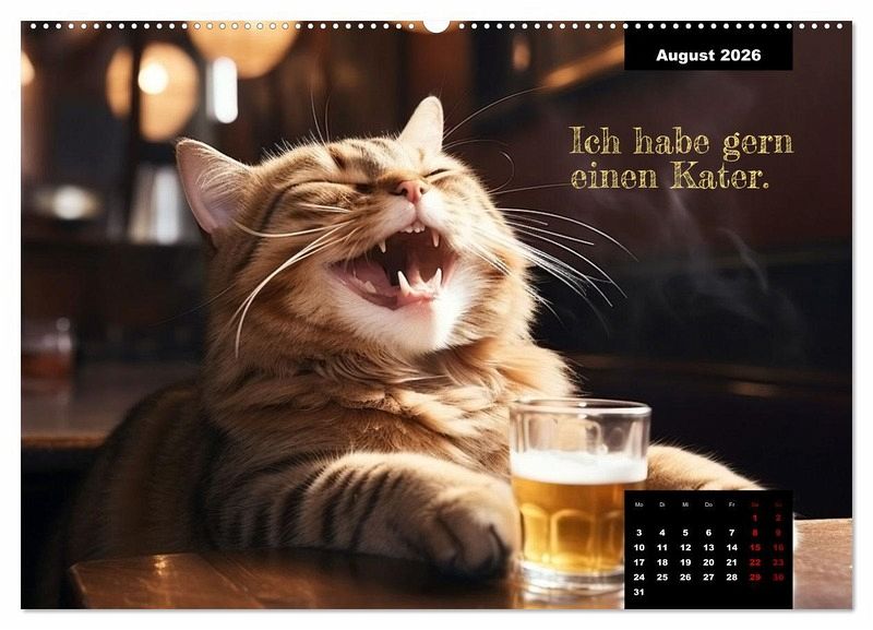 Katzen sind die beleibtesten Haustiere in Deutschland - vollkommen zu recht. Dieser Kalender wirkt einen etwas anderen, aber liebevollen Blick auf unsere pelzigen Freunde. Die mit KI erstellten Bilder zeigen viele bisher unbekannte Facetten - von der Samuraikatze, über die Weltraumkatze bis zum Weihnachtsbaumerklimmer. So haben sie Katzen noch nie gesehen. Drei Sachen haben ale Bilder gemeinsam: Katzen sind süß, überraschend und immer lustig. Der perfekte Kalender für alle Katzenfreunde, die auch Spaß verstehen.