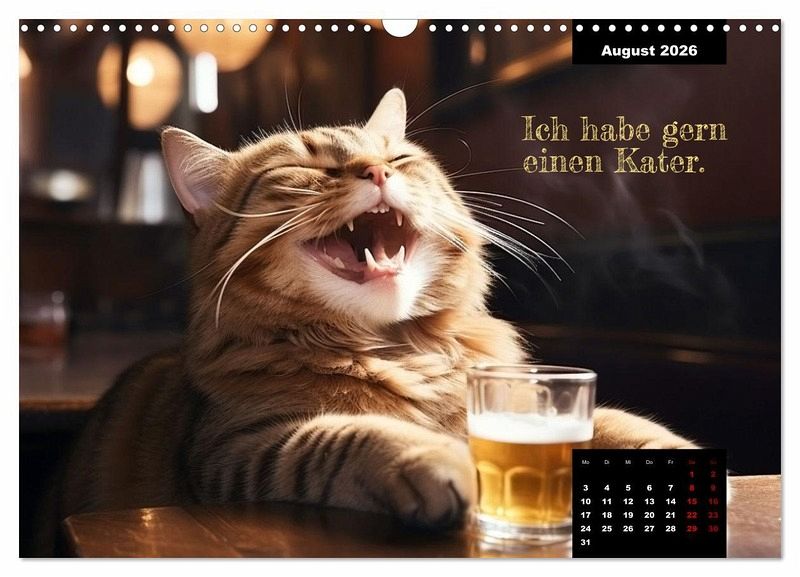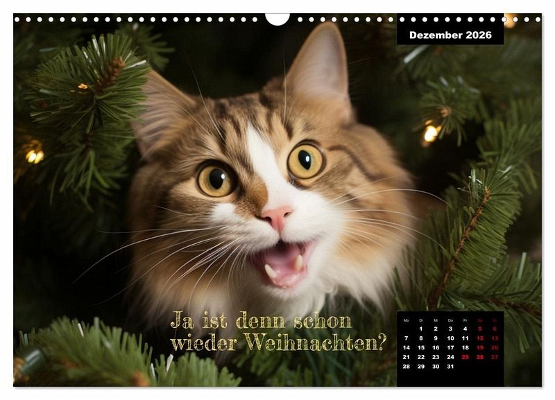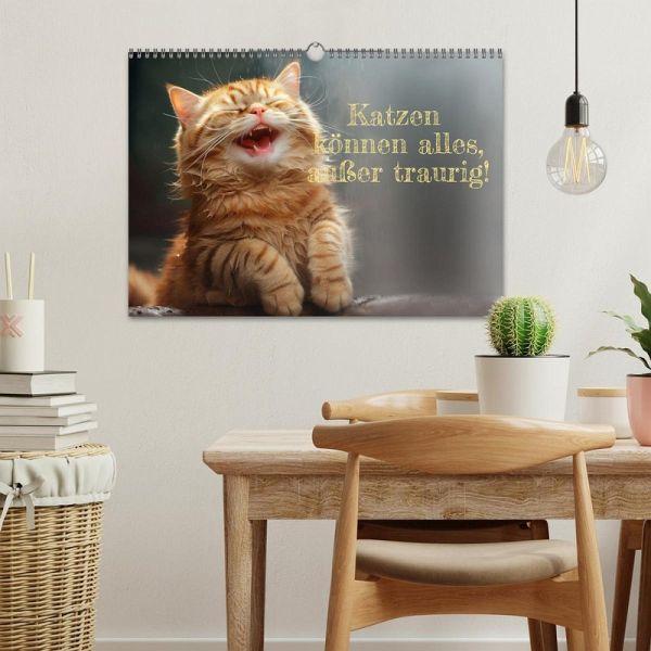 Katzen sind die beleibtesten Haustiere in Deutschland - vollkommen zu recht. Dieser Kalender wirkt einen etwas anderen, aber liebevollen Blick auf unsere pelzigen Freunde. Die mit KI erstellten Bilder zeigen viele bisher unbekannte Facetten - von der Samuraikatze, über die Weltraumkatze bis zum Weihnachtsbaumerklimmer. So haben sie Katzen noch nie gesehen. Drei Sachen haben ale Bilder gemeinsam: Katzen sind süß, überraschend und immer lustig. Der perfekte Kalender für alle Katzenfreunde, die auch Spaß verstehen.