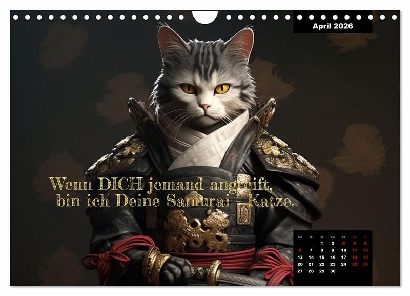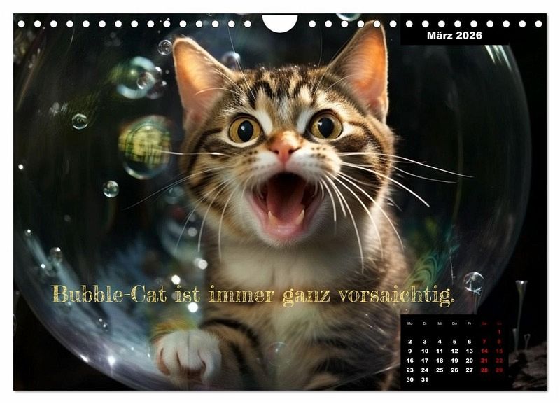 Katzen sind die beleibtesten Haustiere in Deutschland - vollkommen zu recht. Dieser Kalender wirkt einen etwas anderen, aber liebevollen Blick auf unsere pelzigen Freunde. Die mit KI erstellten Bilder zeigen viele bisher unbekannte Facetten - von der Samuraikatze, über die Weltraumkatze bis zum Weihnachtsbaumerklimmer. So haben sie Katzen noch nie gesehen. Drei Sachen haben ale Bilder gemeinsam: Katzen sind süß, überraschend und immer lustig. Der perfekte Kalender für alle Katzenfreunde, die auch Spaß verstehen.