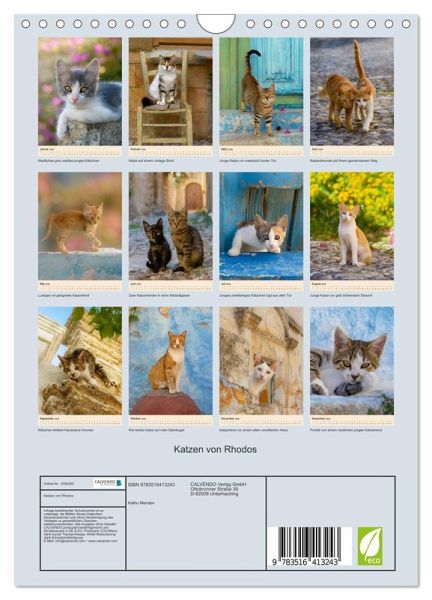 QUALITÄT - Hochwertiger Fotokalender mit 12 wunderschönen Motiven auf lichtbeständigem Bilderdruckpapier, robuste Spiralbindung mit Aufhängebügel.NACHHALTIG - deutliche Abfallreduzierung durch bedarfsgerechte Einzelstückfertigung, umweltfreundliches FSC-zertifiziertes Papier, Produktion in Deutschland, klimabewusste Logistik.PERFEKTES GESCHENK - Kalender für Freunde und Familie, für Kinder und Erwachsene, jung und alt, zu Weihnachten, Geburtstag oder zwischendurch.VIELFALT - Bildkalender in verschiedenen Formaten, z.B. DIN A5, DIN A4, DIN A3 sowie DIN A2. Ob Naturmotiv, Gemälde oder Fotos, ideal für ein persönliches Wohlfühlambiente.Anmutige Katzen in malerischen alten Dorfgassen und vor bunten Blüten fotografiert auf der griechischen Insel Rhodos. von Autor(in): Katho Menden