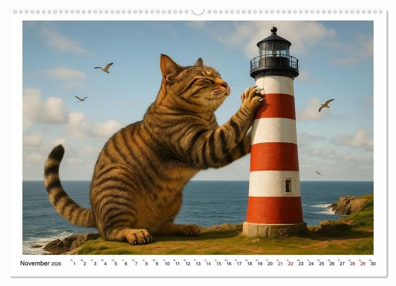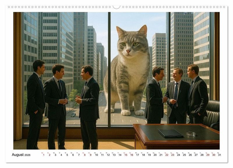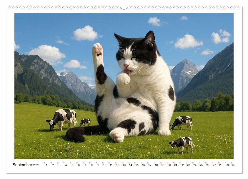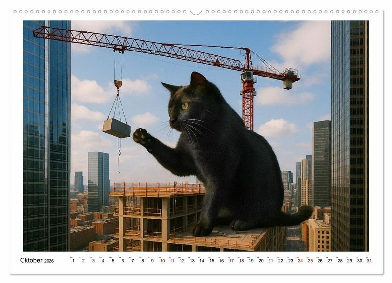 Dieser fröhliche Kalender zeigt lustige Szenen, in denen Katzen dank modernster KI-Technik endlich ihre wahre Größe entfalten. Ob sie sich wie Giganten in Städten räkeln oder Autos als Mäuse betrachten - die Bilder beweisen: die Weltherrschaft der Katzen ist längst beschlossene Sache. Humorvoll, surreal und absolut faszinierend - ein Muss für alle, die wissen, wer wirklich das Sagen hat.