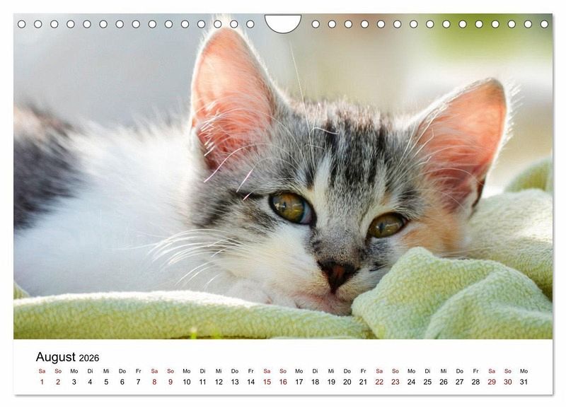 Lassen Sie den Stress des Alltags hinter sich und tauchen Sie ein in die beruhigende Welt unserer entspannten kleinen Katzen! Unser liebevoll gestalteter Katzenkalender für das Jahr 2025 bringt Ihnen jeden Monat ein neues, zauberhaftes Bild von Babykatzen, die in den schönsten Momenten der Entspannung eingefangen wurden.