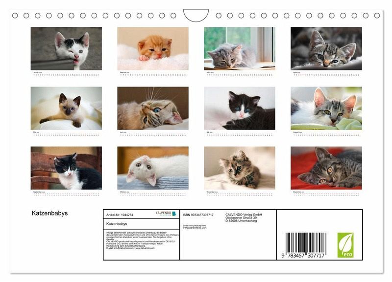 QUALITÄT - Hochwertiger Fotokalender mit 12 wunderschönen Motiven auf lichtbeständigem Bilderdruckpapier, robuste Spiralbindung mit Aufhängebügel.NACHHALTIG - deutliche Abfallreduzierung durch bedarfsgerechte Einzelstückfertigung, umweltfreundliches FSC-zertifiziertes Papier, Produktion in Deutschland, klimabewusste Logistik.PERFEKTES GESCHENK - Kalender für Freunde und Familie, für Kinder und Erwachsene, jung und alt, zu Weihnachten, Geburtstag oder zwischendurch.VIELFALT - Bildkalender in verschiedenen Formaten, z.B. DIN A5, DIN A4, DIN A3 sowie DIN A2. Ob Naturmotiv, Gemälde oder Fotos, ideal für ein persönliches Wohlfühlambiente.Katzenkalender mit Baby Katzen von Autor(in): mquadrat media