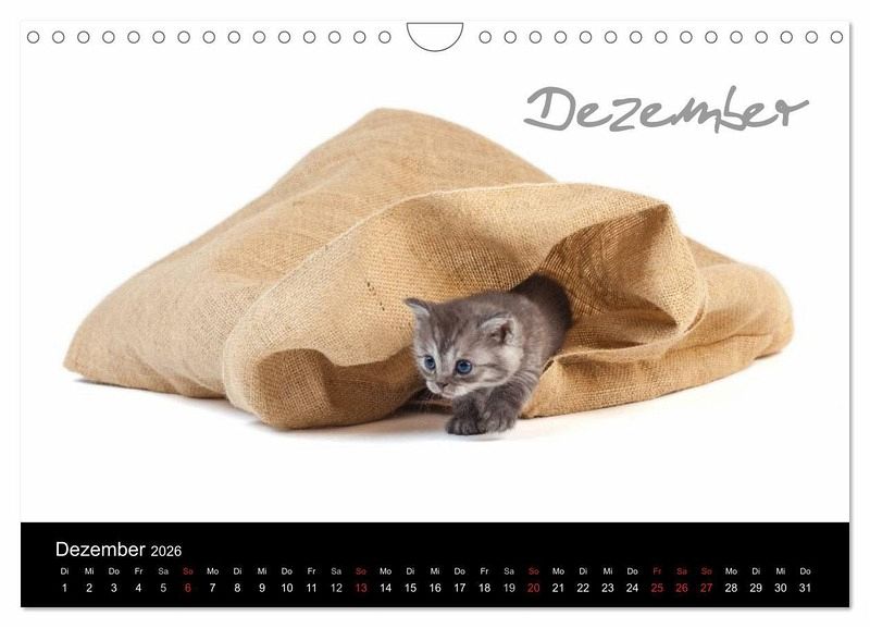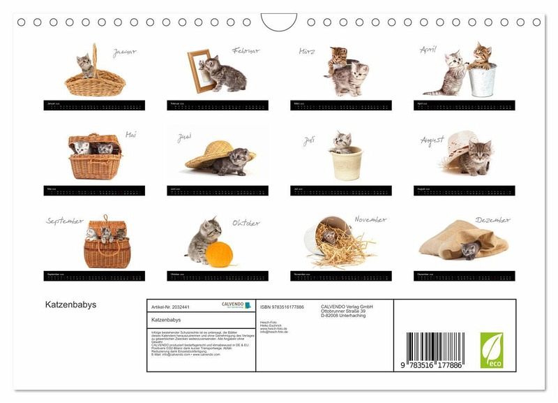 Diese Samtpfötchen wurden liebevoll auf ihren ersten Entdeckungsreisen in Szene gesetzt. Ihre Neugierde, Tollpatschigkeit und Verspieltheit sind auf zwölf eindrucksvoll gestalteten Kalenderblättern zu bewundern.