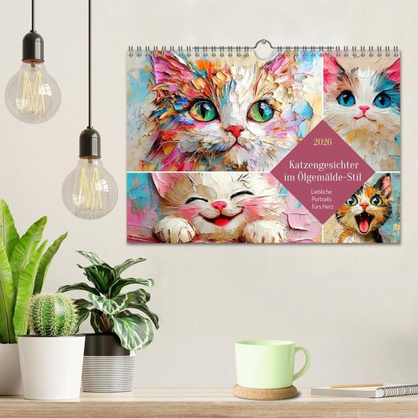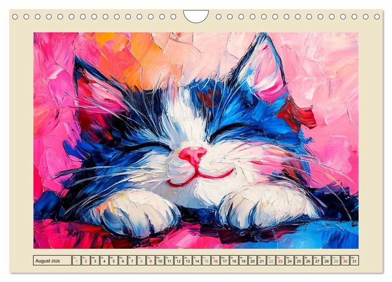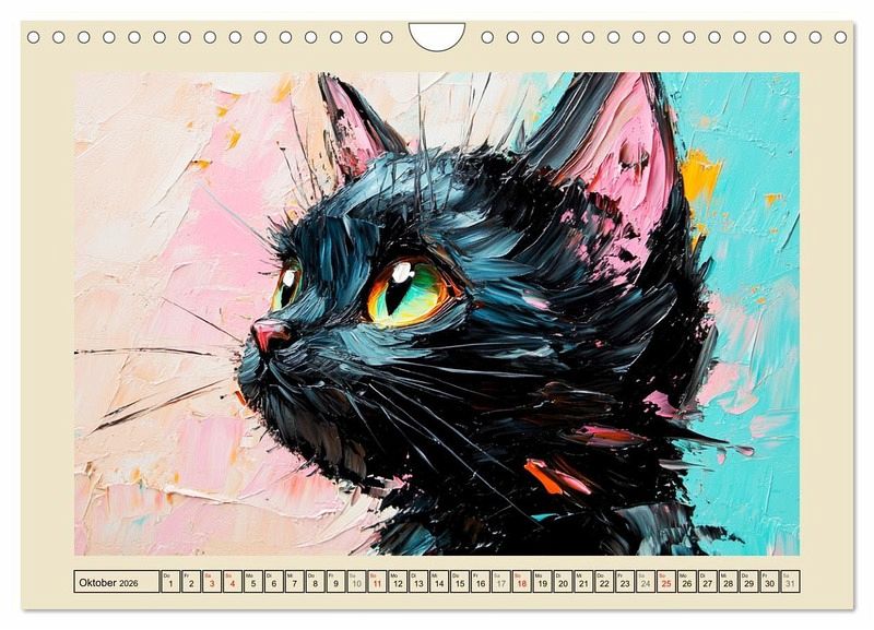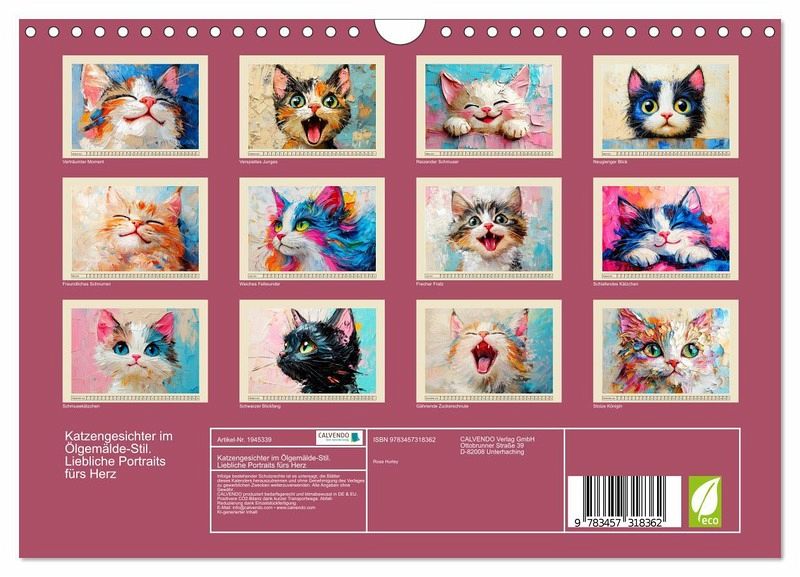 Dieser Kalender zeigt 12 zauberhafte Katzenportraits im Ölgemälde-Stil. Jede Katze wurde mit Hilfe von KI erstellt und bringt ihren eigenen Charme und eine unverwechselbare Persönlichkeit mit. Perfekt für Katzenliebhaber, die jeden Monat ein neues, niedliches Gesicht begrüßen möchten. Lassen Sie sich von diesen künstlerischen Darstellungen verzaubern und erleben Sie ein Jahr voller Katzenliebe.