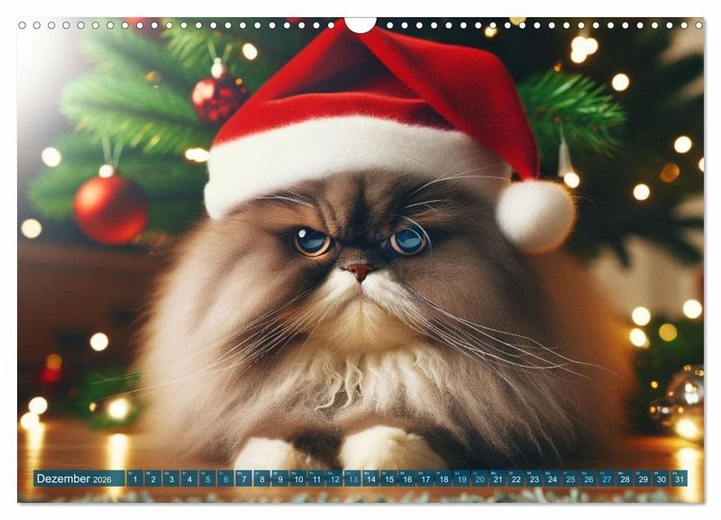 Dezember: Weihnachtswiderwillen: Eine fluffige Katze unter dem Zwang der Festlichkeit