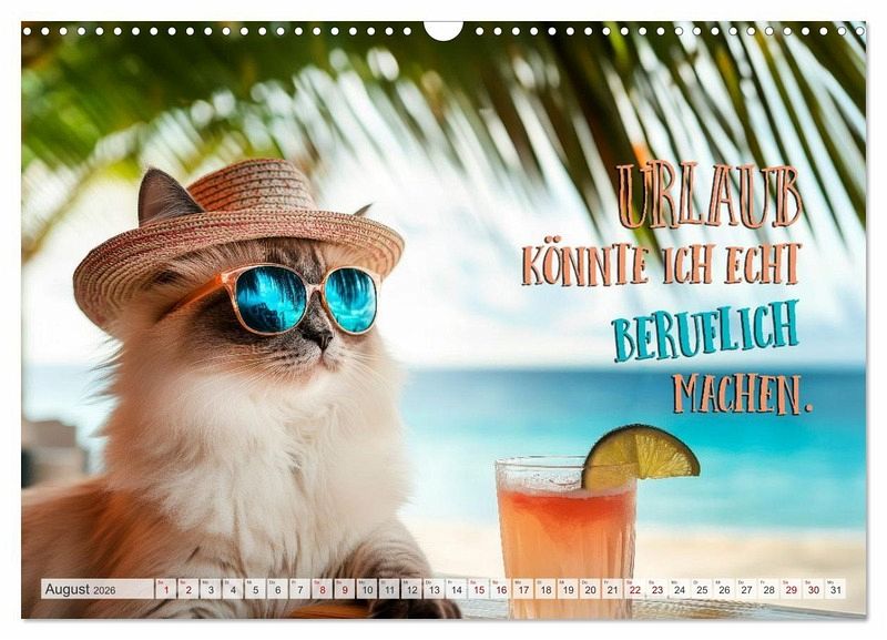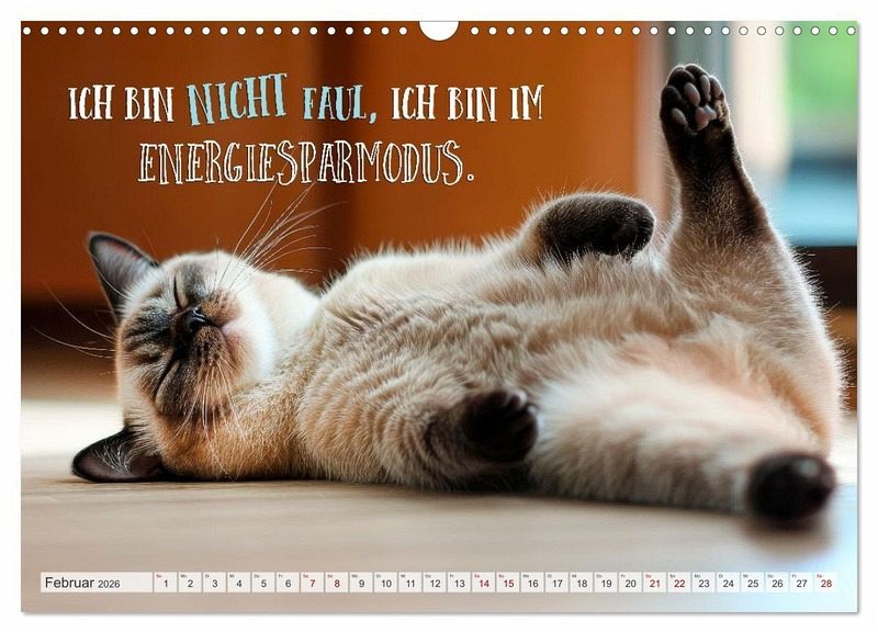 Ein ganzes Jahr voller Schnurren, Charme und einer guten Portion Katzenwitz. Es trifft Miau auf Humor und flauschige Attitüde auf 100 Prozent Cattitude. Somit ist klar, hier regiert die Katze; mit Samtpfote, aber bestimmt. Ideal für alle Katzenfans, die sich nicht nur im Spruch, sondern auch ein bisschen in der Mieze wiedererkennen. Mit Liebe, Lachen und KI erschaffen sowie ohne Tierleid, aber mit extra viel Fluff.