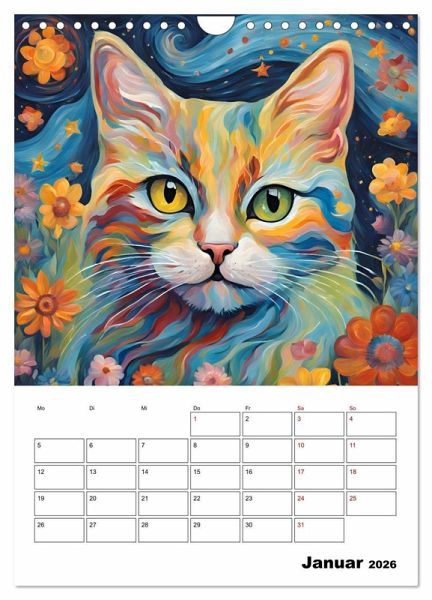 Jeder Monat zeigt eine neue Katze in künstlicherischer Weise. Ideal für Katzenliebhaber, die ihren Alltag mit einem Lächeln und einer guten Portion Katzenmagie bereichern wollen.
