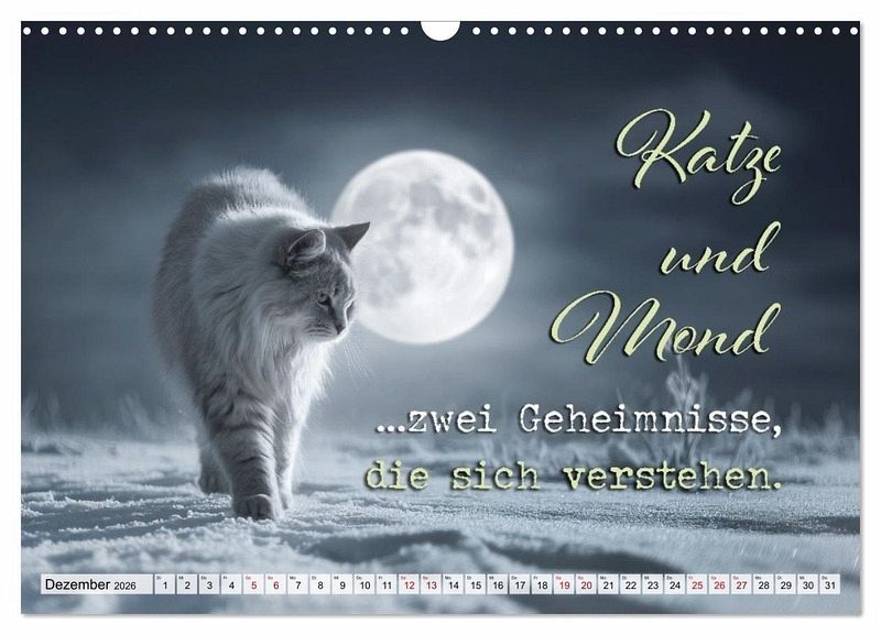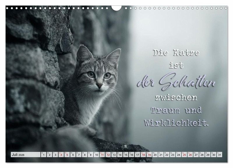 Tauchen Sie ein in die stille Magie der Katzenwelt. Dieser niedliche Kalender verbindet verträumte, ästhetische Bildmotive mit inspirierenden Sprüchen, die Herz und Seele berühren. Alle Motive wurden mit modernster KI erschaffen; detailreich, einzigartig und voller Ausdruck. Jede Seite öffnet ein neues Kapitel voller Poesie, mit geheimnisvollen, sanften und seelenvollen Gedanken. Für Katzenliebhaber und Freunde des Poetischen ein wundervolles Geschenk.