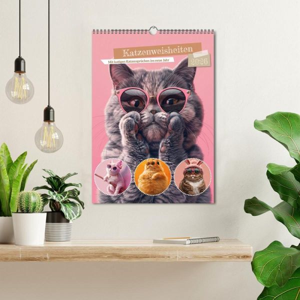 QUALITÄT - Hochwertiger Fotokalender mit 12 wunderschönen Motiven auf lichtbeständigem Bilderdruckpapier, robuste Spiralbindung mit Aufhängebügel.NACHHALTIG - deutliche Abfallreduzierung durch bedarfsgerechte Einzelstückfertigung, umweltfreundliches FSC-zertifiziertes Papier, Produktion in Deutschland, klimabewusste Logistik.PERFEKTES GESCHENK - Kalender für Freunde und Familie, für Kinder und Erwachsene, jung und alt, zu Weihnachten, Geburtstag oder zwischendurch.VIELFALT - Bildkalender in verschiedenen Formaten, z.B. DIN A5, DIN A4, DIN A3 sowie DIN A2. Ob Naturmotiv, Gemälde oder Fotos, ideal für ein persönliches Wohlfühlambiente.Katzenweisheiten sind kurze, prägnante Sprüche oder Zitate, die die Eigenschaften und Verhaltensweisen von Katzen auf humorvolle, kluge oder inspirierende Weise erfassen. von Autor(in): Steffen Gierok ; Magik Artist Design