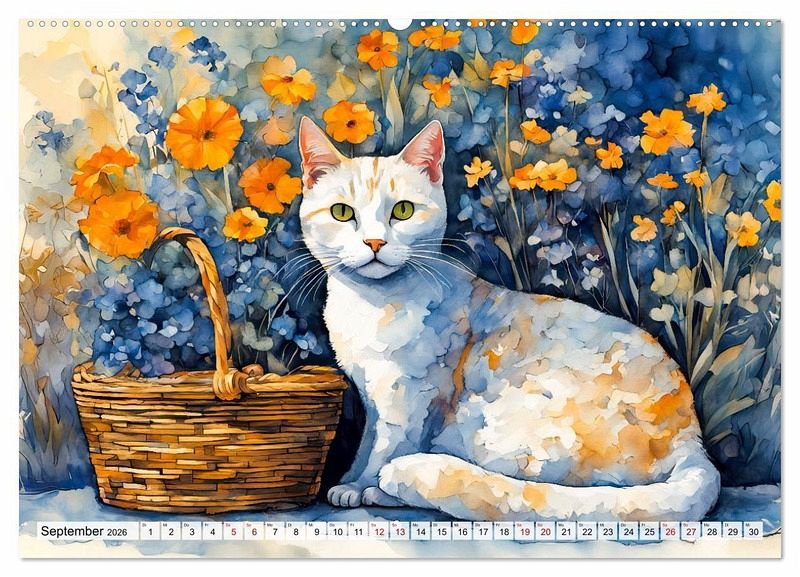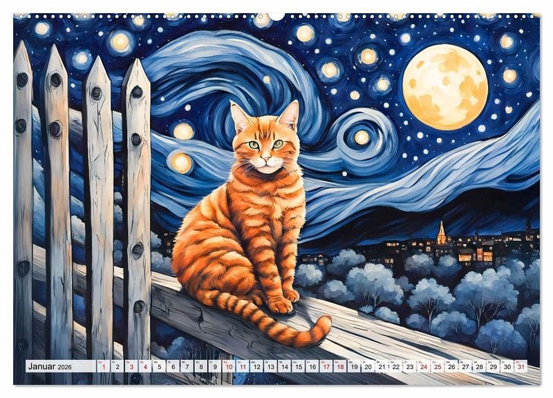 Tauchen Sie ein in die zauberhafte Welt der Katzen mit dem Kalender "Katzenzauber - Katzenkalender mit stimmungsvollen Bildern". Dieser wunderschöne KI-generierte Wandkalender zeigt zwölf kunstvolle Katzenmotive in malerischen Szenen, die Wärme, Ruhe und Magie ausstrahlen. Jede Illustration fängt die einzigartige Ausstrahlung und Anmut der Samtpfoten ein - von verträumten Momenten im Blumenmeer bis hin zu gemütlichen Augenblicken im Kerzenschein. Perfekt für alle Katzenliebhaber und Kunstfreunde, die sich das ganze Jahr über an ausdrucksstarken und detailreichen Bildern erfreuen möchten.