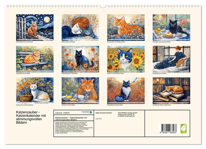 PREMIUM-LINIE - Brillanter Fotokalender mit 12 wunderschönen Motiven, Kunstdruck in Hochglanz in Museumsqualität.QUALITÄT - edle Materialien, stabile Rückwand mit 2 innovativen Einstecktaschen für eine optimale Präsentation an der Wand.NACHHALTIG - deutliche Abfallreduzierung durch bedarfsgerechte Einzelstückfertigung, umweltfreundliches FSC-zertifiziertes Papier, Produktion in Deutschland, klimabewusste Logistik.PERFEKTES GESCHENK - Kalender für Freunde und Familie, für Kinder und Erwachsene, jung und alt, zu Weihnachten, Geburtstag oder zwischendurch.Ein Kalender voller Katzenliebe und Gemütlichkeit von Autor(in): Anja Frost