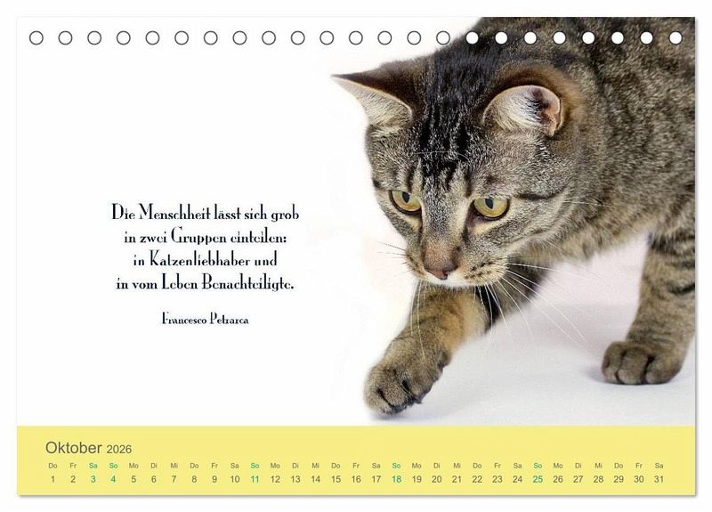 QUALITÄT - Hochwertiger Fotokalender mit 12 wunderschönen Motiven auf lichtbeständigem Bilderdruckpapier, robuste Spiralbindung.NACHHALTIG - deutliche Abfallreduzierung durch bedarfsgerechte Einzelstückfertigung, umweltfreundliches FSC-zertifiziertes Papier, Produktion in Deutschland, klimabewusste Logistik.PERFEKTES GESCHENK - Kalender für Freunde und Familie, für Kinder und Erwachsene, jung und alt, zu Weihnachten, Geburtstag oder zwischendurch.VIELFALT - Bildkalender in verschiedenen Formaten, z.B. DIN A5, DIN A4, DIN A3 sowie DIN A2. Ob Naturmotiv, Gemälde oder Fotos, ideal für ein persönliches Wohlfühlambiente.Katzenportraits mit Zitaten von Autor(in): dogmoves