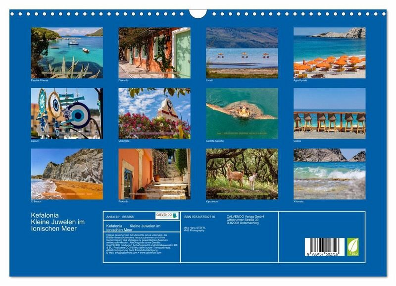 Begleiten Sie uns auf eine unvergessliche Reise zu einer der atemberaubendsten Inseln Griechenlands - Kefalonia! Dieser wunderschöne Kalender entführt Sie Monat für Monat in eine Welt voller Magie und Abenteuer. Lassen Sie sich von den kleinen Juwelen verzaubern, die diese Perle im Ionischen Meer zu bieten hat.