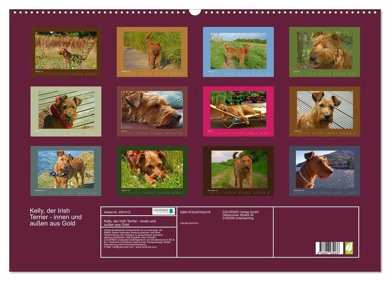 QUALITÄT - Hochwertiger Fotokalender mit 12 wunderschönen Motiven auf lichtbeständigem Bilderdruckpapier, robuste Spiralbindung mit Aufhängebügel.NACHHALTIG - deutliche Abfallreduzierung durch bedarfsgerechte Einzelstückfertigung, umweltfreundliches FSC-zertifiziertes Papier, Produktion in Deutschland, klimabewusste Logistik.PERFEKTES GESCHENK - Kalender für Freunde und Familie, für Kinder und Erwachsene, jung und alt, zu Weihnachten, Geburtstag oder zwischendurch.VIELFALT - Bildkalender in verschiedenen Formaten, z.B. DIN A5, DIN A4, DIN A3 sowie DIN A2. Ob Naturmotiv, Gemälde oder Fotos, ideal für ein persönliches Wohlfühlambiente.Kelly, der einzigartige Irish Terrier von Autor(in): Claudia Schimon