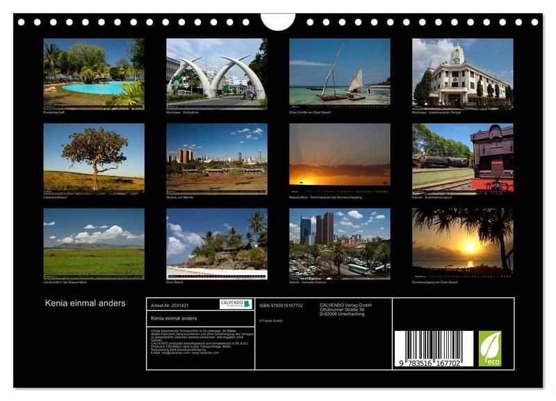 QUALITÄT - Hochwertiger Fotokalender mit 12 wunderschönen Motiven auf lichtbeständigem Bilderdruckpapier, robuste Spiralbindung mit Aufhängebügel.NACHHALTIG - deutliche Abfallreduzierung durch bedarfsgerechte Einzelstückfertigung, umweltfreundliches FSC-zertifiziertes Papier, Produktion in Deutschland, klimabewusste Logistik.PERFEKTES GESCHENK - Kalender für Freunde und Familie, für Kinder und Erwachsene, jung und alt, zu Weihnachten, Geburtstag oder zwischendurch.VIELFALT - Bildkalender in verschiedenen Formaten, z.B. DIN A5, DIN A4, DIN A3 sowie DIN A2. Ob Naturmotiv, Gemälde oder Fotos, ideal für ein persönliches Wohlfühlambiente.Einblicke in Städte und Landschaften Kenias von Autor(in): Frauke Scholz
