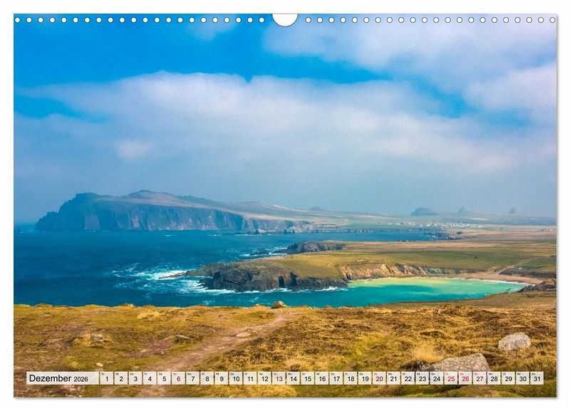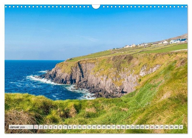 Dieser Kalender zeigt die atemberaubende Landschaft der Grafschaft Kerry in Irland - von wilden Klippen, einsamen Stränden und sanften Hügeln bis hin zu historischen Bauwerken. Monat für Monat entführt er in die grüne Perle Irlands und fängt die besondere Magie der Atlantikküste ein.