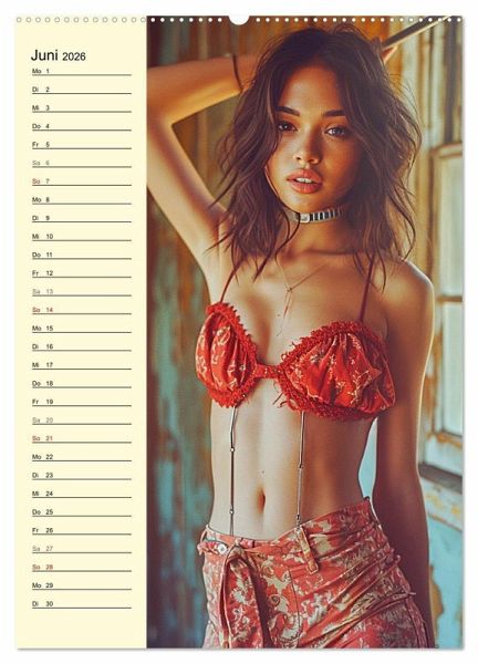 Tauchen Sie ein in die faszinierende Welt moderner Landmädchen, die Freiheit und Nostalgie verkörpern. Jeder Monat wurde mit Hilfe von KI erstellt und präsentiert eine neue, verführerische Seite dieser romantisch anmutenden Frauen. Mit Liebreiz und Charme brechen sie mit Konventionen und setzen ein kraftvolles Statement. Ein Kalender, der Selbstbewusstsein, Landleben und erotische Ausstrahlung in jedem Bild vereint.