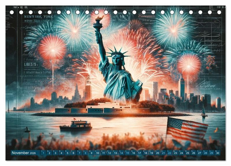 November: Feuerwerk der Freiheit: New Yorks Skyline im KI-generierten Glanz
