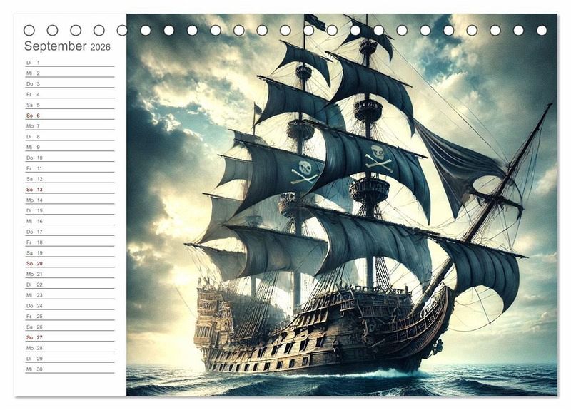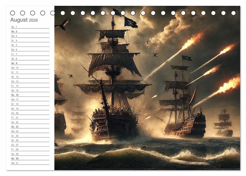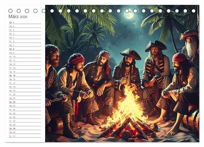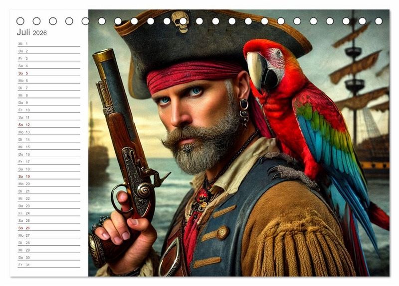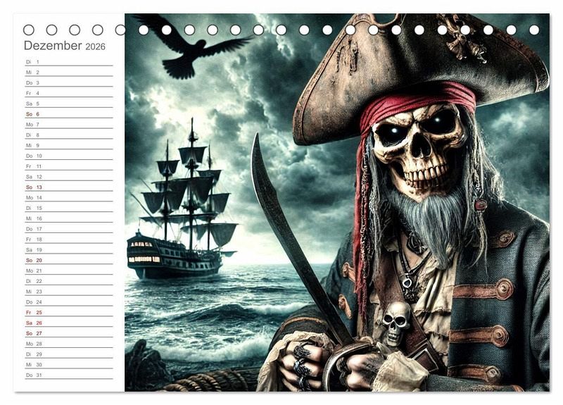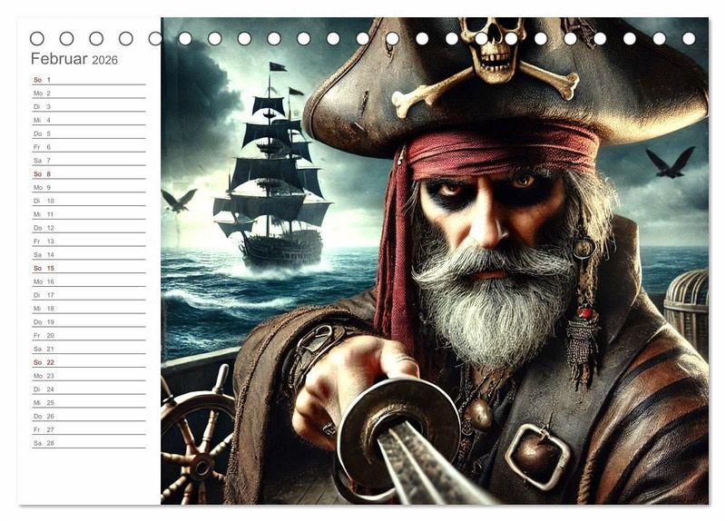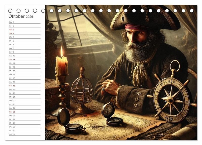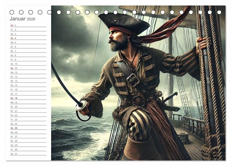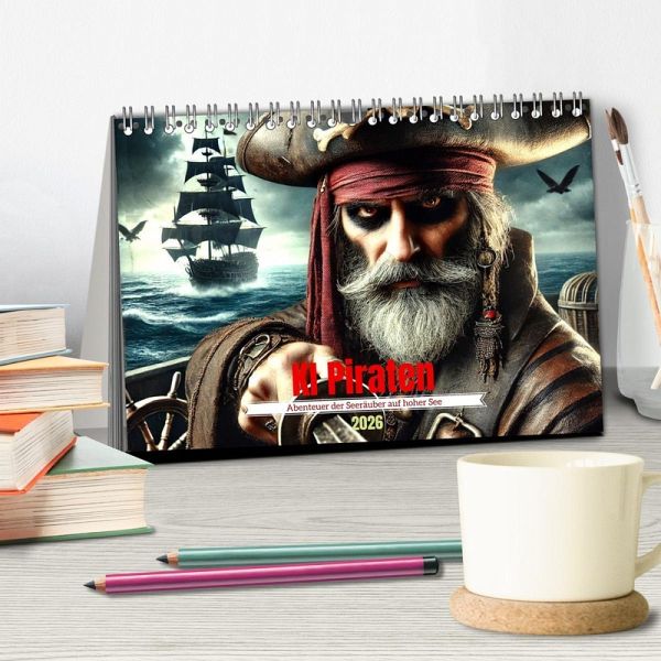 Tauchen Sie ein in die Welt der Piraten, die bekannt dafür waren, Schiffe zu überfallen und deren wertvolle Schätze zu rauben. Es wurde gekämpft, getrunken und Schatzkarten studiert. Als Seeräuber lebten sie außerhalb aller Gesetze, trieben ihr Unwesen und galten als Schrecken der Meere. Mit Hilfe von KI begleiten Sie 12 Bilder durch das Jahr. Ein perfektes Geschenk für Piratenfans