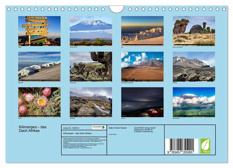 QUALITÄT - Hochwertiger Fotokalender mit 12 wunderschönen Motiven auf lichtbeständigem Bilderdruckpapier, robuste Spiralbindung mit Aufhängebügel.NACHHALTIG - deutliche Abfallreduzierung durch bedarfsgerechte Einzelstückfertigung, umweltfreundliches FSC-zertifiziertes Papier, Produktion in Deutschland, klimabewusste Logistik.PERFEKTES GESCHENK - Kalender für Freunde und Familie, für Kinder und Erwachsene, jung und alt, zu Weihnachten, Geburtstag oder zwischendurch.VIELFALT - Bildkalender in verschiedenen Formaten, z.B. DIN A5, DIN A4, DIN A3 sowie DIN A2. Ob Naturmotiv, Gemälde oder Fotos, ideal für ein persönliches Wohlfühlambiente.Der höchste Berg Afrikas und einer der berühmtesten freistehenden Berge der Welt von Autor(in): Susan Michel