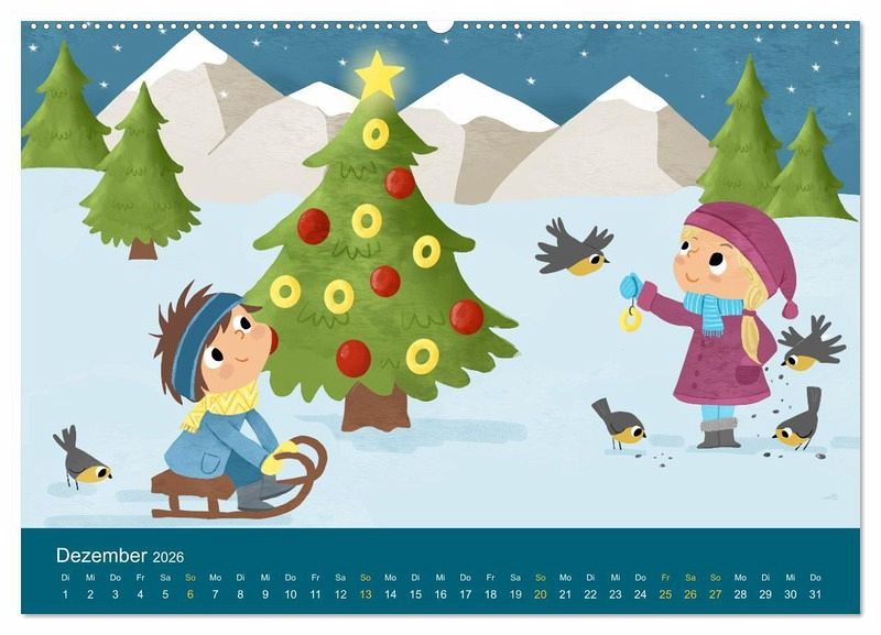 Ein Kinderkalender, liebevoll illustriert mit fröhlichen, lachenden Kindern, die miteinander spielen und den Wechsel der Jahreszeiten im Einklang mit der Natur genießen und feiern. Eine lustige, originelle Idee für Familien, Kinder, Jungs und Mädchen für Kita, Kindergarten oder Schule.