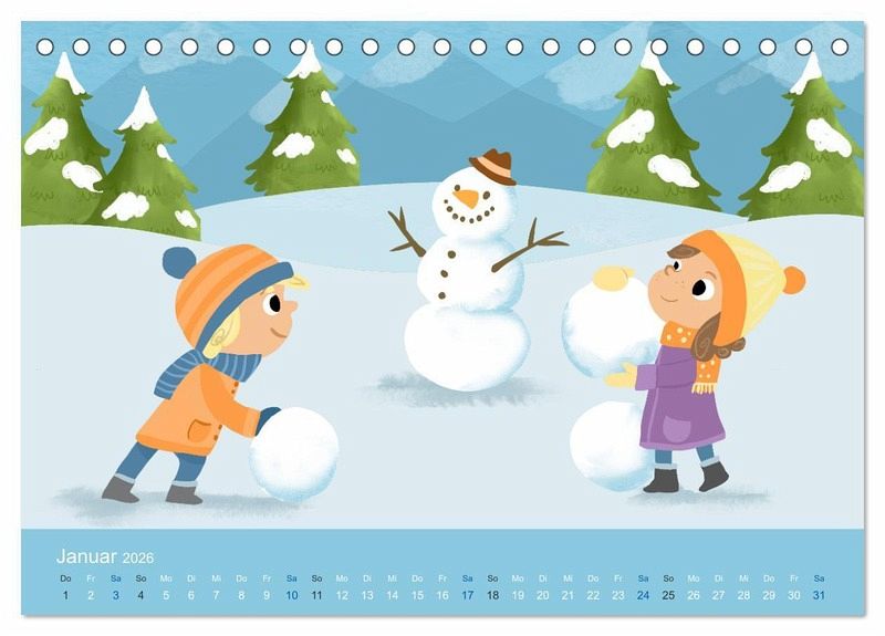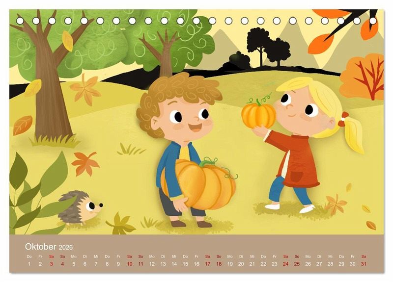 Ein Kinderkalender, liebevoll illustriert mit fröhlichen, lachenden Kindern, die miteinander spielen und den Wechsel der Jahreszeiten im Einklang mit der Natur genießen und feiern. Eine lustige, originelle Idee für Familien, Kinder, Jungs und Mädchen für Kita, Kindergarten oder Schule.