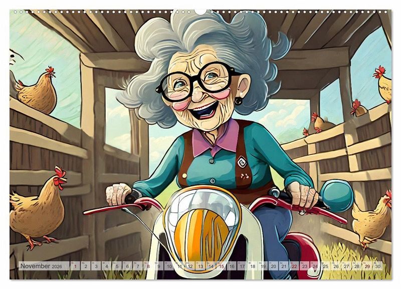 November: Meine Oma fährt im Hühnerstall Motorrad