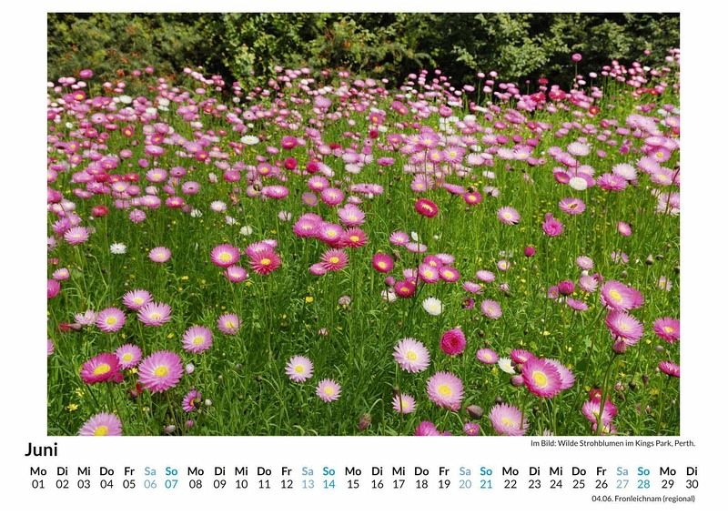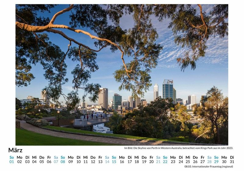 Entdecken Sie die atemberaubende Schönheit des Kings Park in Perth mit unserem exklusiven Wandkalender! Lassen Sie sich Monat für Monat von 12 sorgfältig ausgewählten Motiven verzaubern, die die üppigen Parkanlagen und farbenprächtigen Gärten dieses weltberühmten Parks in Szene setzen. Gedruckt auf hochwertigem, lichtbeständigem Bilderdruckpapier, bringt dieser Kalender die Natur direkt in Ihr Zuhause. Nachhaltig in Deutschland auf FSC-zertifiziertem Papier produziert, ist er nicht nur ein optisches Highlight, sondern auch umweltfreundlich. Perfekt als Geschenk oder für die eigene Wand - holen Sie sich ein Stück australische Natur ins Haus! Hochwertig Erleben Sie ein Jahr voller Eleganz mit unserem Premium-Fotokalender. Jedes der 12 Motive ist auf hochwertigem, lichtbeständigem Bilderdruckpapier gedruckt, um die Lebendigkeit jedes Bildes zu bewahren. Die robuste Spiralbindung gewährleistet Langlebigkeit und einfache Handhabung. Nachhaltig Unser Engagement für die Umwelt spiegelt sich in jedem Exemplar wider. Durch die Produktion auf Abruf reduzieren wir signifikant unseren Abfall. Wir verwenden ausschließlich umweltfreundliches, FSC-zertifiziertes Papier. Stolz gefertigt in Deutschland, achten wir bei unserer Logistik auf Klimaschutz, um unseren ökologischen Fußabdruck zu minimieren. Das ideale Geschenk Dieser Kalender ist das perfekte Präsent für jeden Anlass - ob Weihnachten, Geburtstage oder einfach als liebevolle Aufmerksamkeit zwischendurch. Geeignet für Freunde, Familie, Kinder und Erwachsene gleichermaßen, bereichert er jedes Zuhause mit seiner Vielfalt und Schönheit, unabhängig vom Alter der Beschenkten.